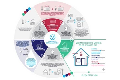 Door de ‘praatplaat’ te gebruiken kijken opdrachtgever en opdrachtnemer naar de wisselwerking tussen de vuistregels, die als taartpunten op de Duurzame Warmteschijf terugkomen. “Als de ambitie is om de woningen te gaan verwarmen met een warmtepomp, kan je in gesprek over wat dat betekent voor de andere twee taartschijven: de warmtebehoefte en het afgiftesysteem. Zitten er dikke, overgedimensioneerde radiatoren in de woningen? Dan hoef je misschien niet zoveel te doen aan het afgiftesysteem. Meestal zul je wél iets moeten doen aan de warmtebehoefte.”