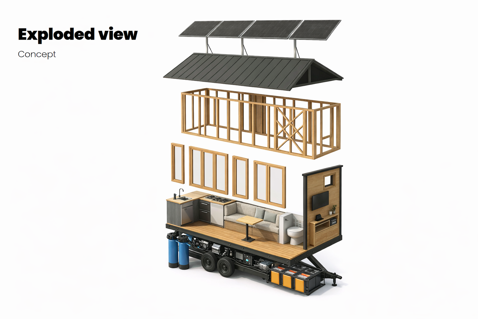 Het Levenshuis is een mobiel huis dat niet per se een product is, maar vooral een showroom van wat er verkrijgbaar is aan biobased, gezonde en brandveilige oplossingen. “Mensen moeten dat kunnen zien, voelen en ervaren. Omdat mensen niet allemaal naar één bepaalde locatie komen, willen wij naar de mensen toe gaan. Vandaar dat we hebben gekozen voor een mobiele opbouw op een grote oplegger. Die oplegger is overigens hergebruikt; die heeft al heel wat kilometers afgelegd”, zo vertelt initiatiefnemer Joël Horn (28).